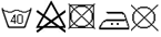 40° Buntwäsche, nicht bleichen, nicht trocknergeeignet, mäßig heiß bügeln, nicht chemisch reinigen